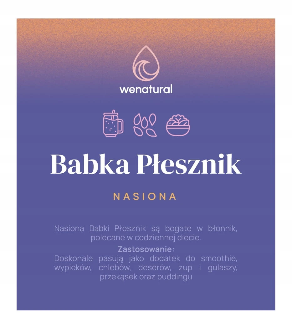 Jak stosować babkę płesznik? Zalecamy spożywanie 2 razy dziennie po 6-7 g (2 łyżeczki) nasion, około 30 minut przed posiłkiem. Wsyp nasiona do szklanki z letnią wodą, odczekaj kilka minut i wypij. Pamiętaj, aby pić dużo wody podczas stosowania babki płesznik – około 2 litrów dziennie, aby uzyskać optymalne efekty. Zadbaj o swoje zdrowie już teraz! Zamów nasiona babki płesznik od Wenatural i poczuj różnicę – zarówno w trawieniu, jak i ogólnym samopoczuciu. To prosty krok w stronę lepszego zdrowia i stylu życia, który możesz zrobić już dzisiaj | |