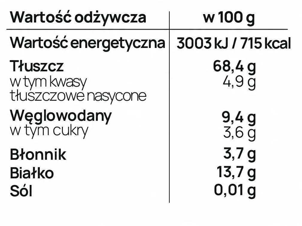 Dlaczego warto sięgnąć po Orzechy Piniowe Wenatural?✔ Źródło zdrowych tłuszczów – zawierają cenne kwasy tłuszczowe, które wspierają pracę serca i układu krążenia. ✔ Bogactwo witamin i minerałów – dostarczają witaminę E, magnez, cynk oraz żelazo, wpływając pozytywnie na odporność i wygląd skóry. ✔ Wsparcie dla mózgu – zawarte w nich antyoksydanty i nienasycone kwasy tłuszczowe wspomagają koncentrację i funkcje poznawcze. ✔ Wysoka zawartość białka – idealne dla osób aktywnych oraz na dietach roślinnych. ✔ Niski indeks glikemiczny – odpowiednie dla osób dbających o poziom cukru we krwi. Zamów nasze orzechy pini, aby cieszyć się ich wyjątkowym smakiem oraz korzyściami zdrowotnymi każdego dnia. Pozwól sobie na chwilę smakowej przyjemności, wybierając tę zdrową i pyszną przekąskę, która wzbogaci Twoją dietę o naturalne bogactwo. | |