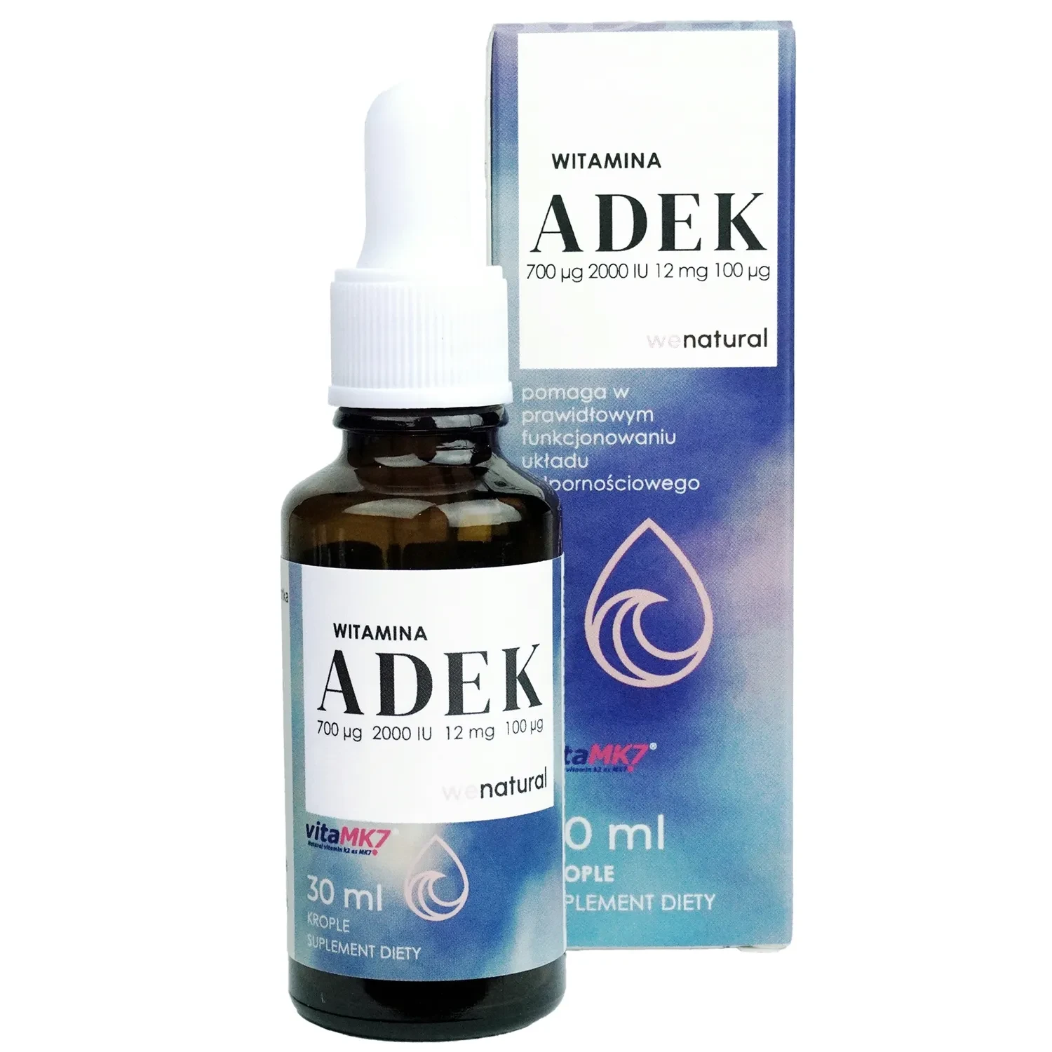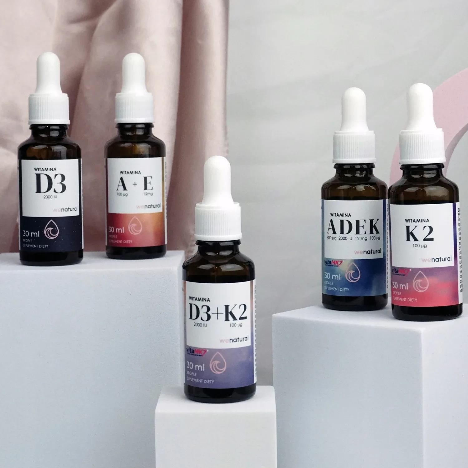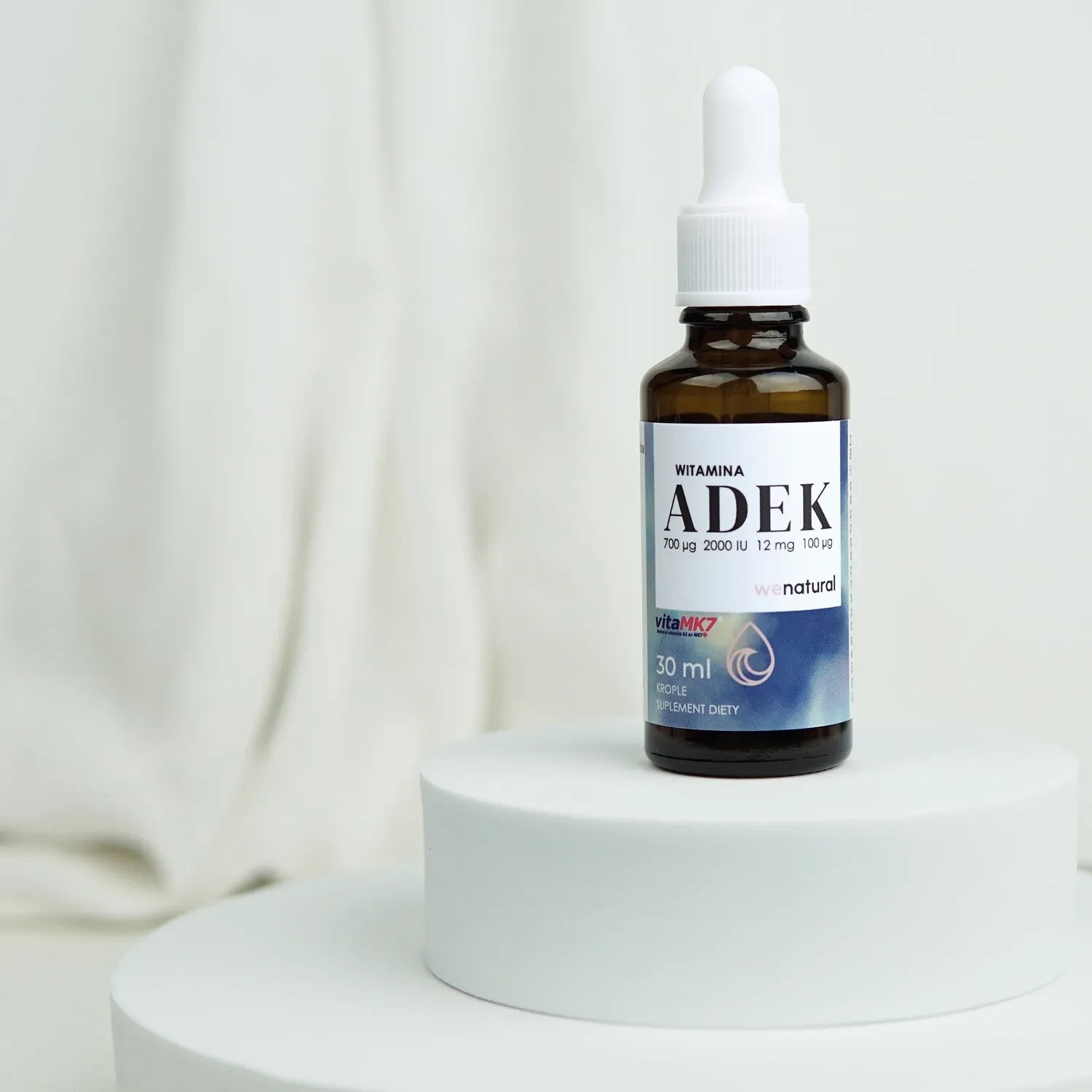 Wybierz Witaminę ADEK Wenatural – skuteczny kompleks witamin rozpuszczalnych w tłuszczach, który wesprze Twoją odporność, kości, skórę i ogólną kondycję organizmu każdego dnia.